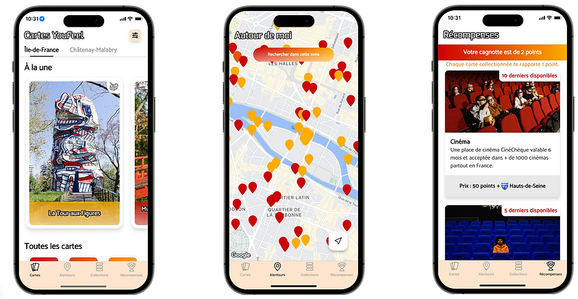 YouFeel se distingue des autres applications culturelles par son approche originale de la collection et de la récompense.