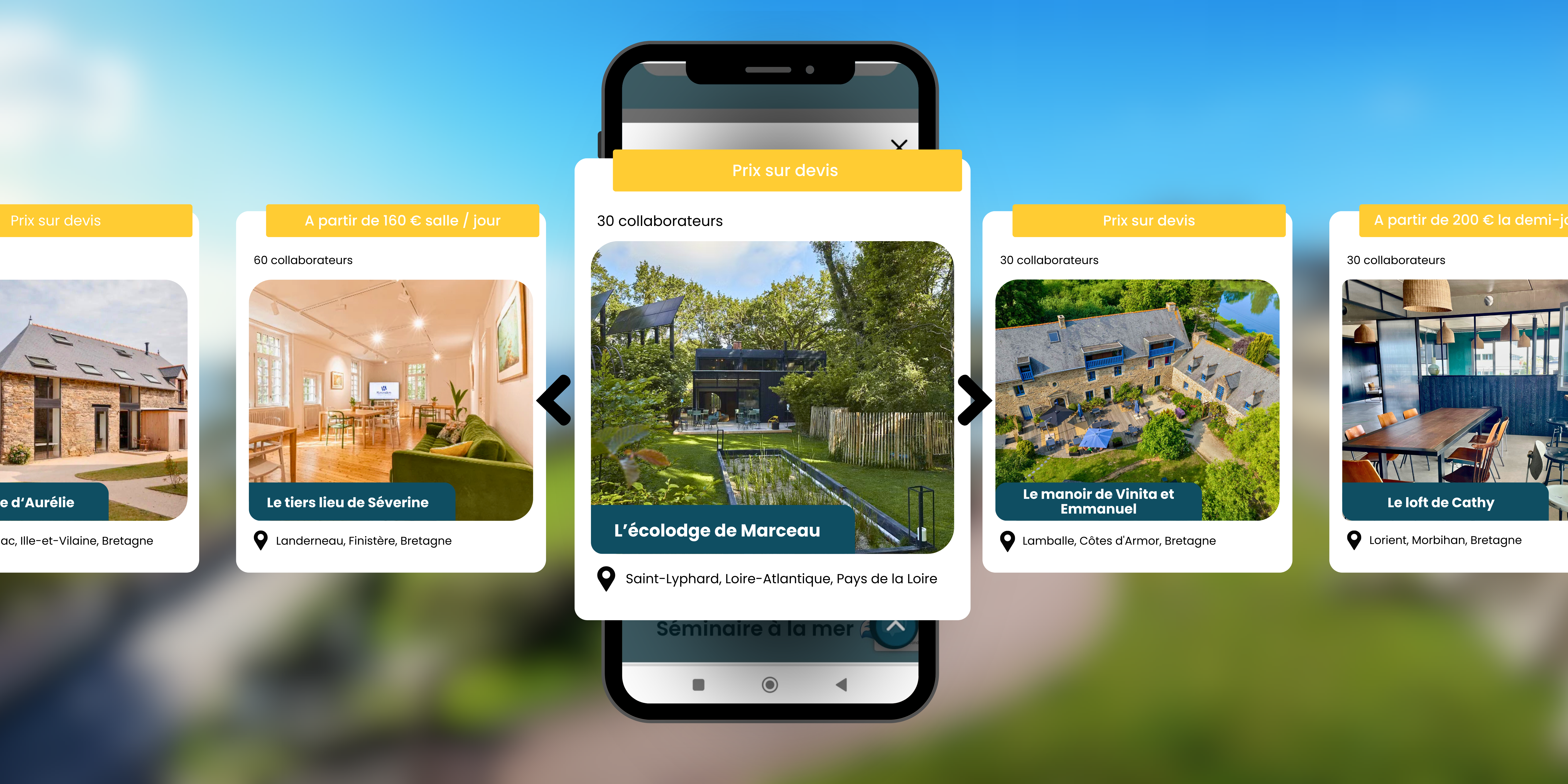 Via notre site, les managers accèdent à une variété de plus de 150 lieux inspirants et une diversité de prestataires pour créer des séminaires vraiment uniques.