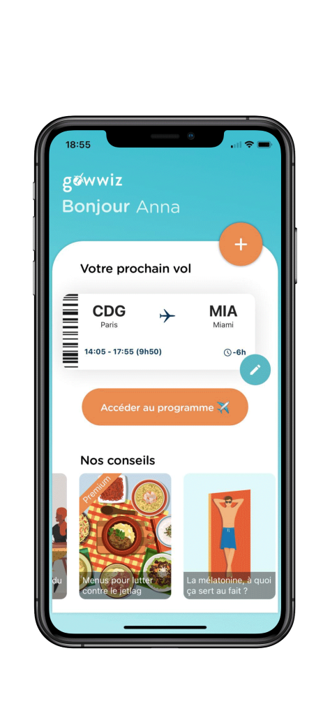 Gowwiz a conçu une application mobile en collaboration avec le CHU et le Centre du Sommeil de Brest, spécialement pour les voyageurs long-courrier, pour combattre les effets du décalage horaire.