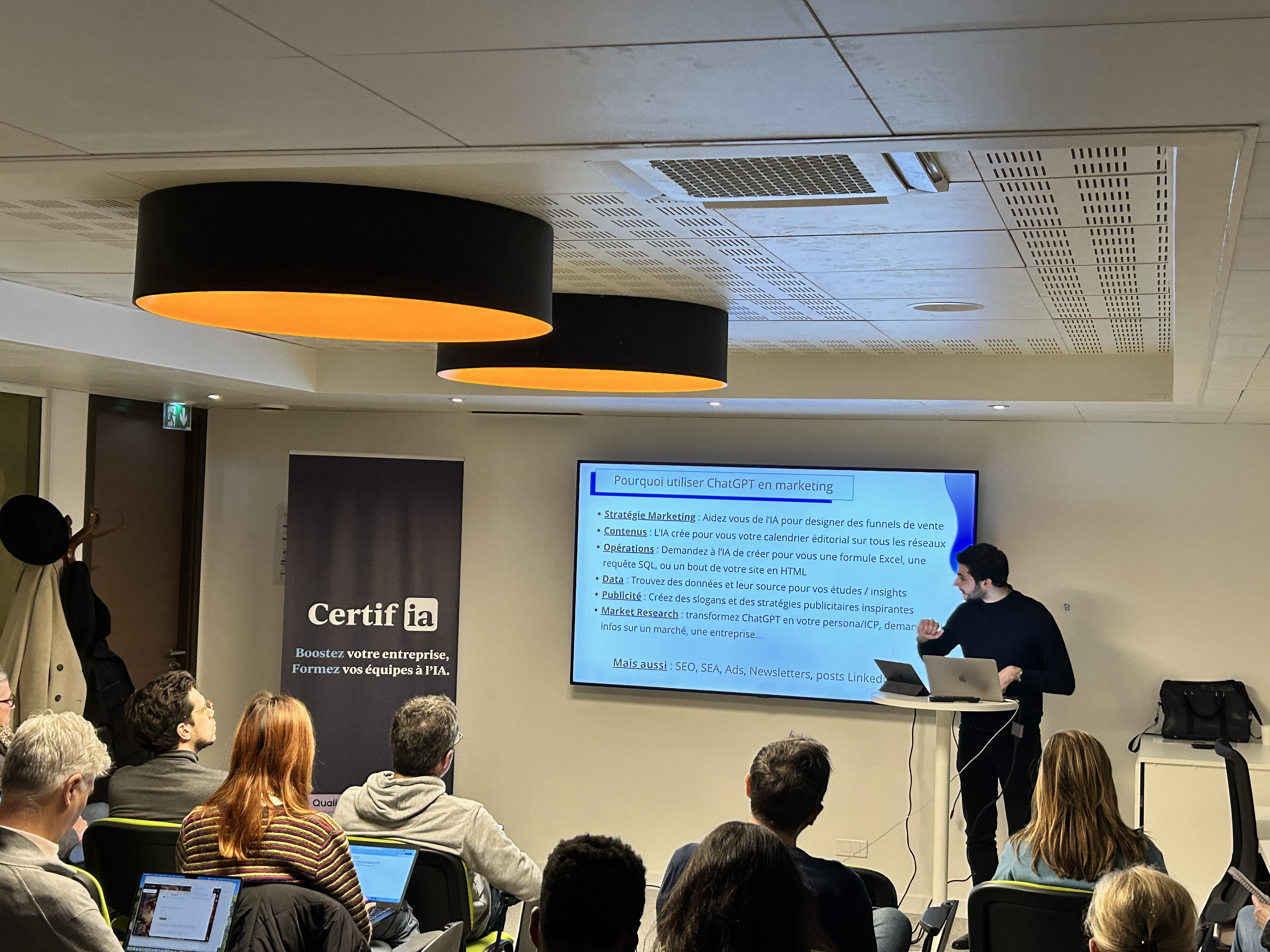 Certif-ia a développé une méthodologie pour accompagner les entreprises en présentiel à adopter l’intelligence artificielle de manière stratégique et pratique.