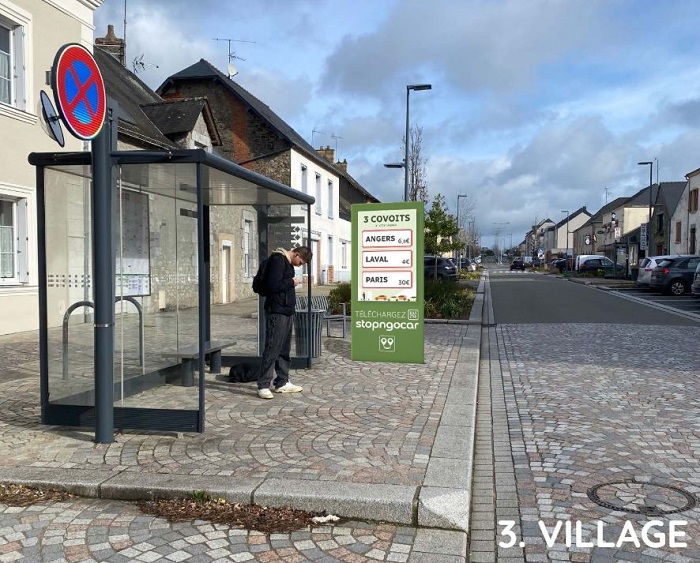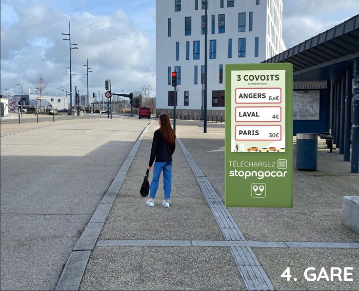- Dès que la demande est validée, le trajet apparait sur la borne Stopngo Car, visible par tous les conducteurs.