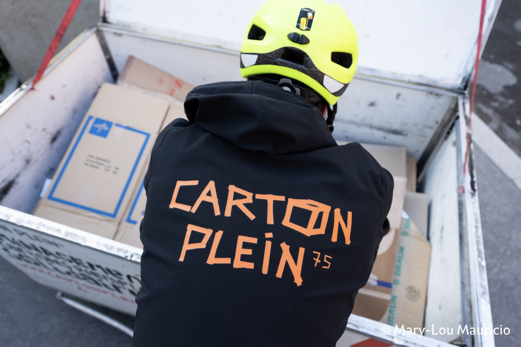 L’activité principale et fondatrice de Carton Plein est la collecte de cartons à vélo auprès de commerçants et d’entreprises à Paris et en petite couronne. Cela permet de répondre à un besoin fort de ces acteurs qui reçoivent quotidiennement des livraisons et se retrouvent avec des quantités importantes de cartons dont ils doivent se débarrasser.