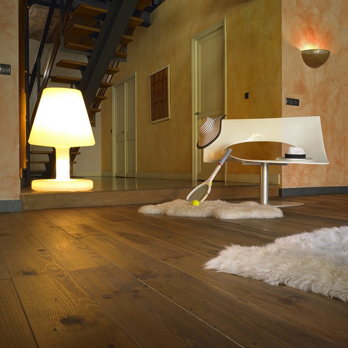 L’huile utilisée est d’origine végétale sans formaldéhyde et offre un superbe aspect mat. Avec de vraies qualités : non seulement elle imprègne le bois en profondeur, mais elle a aussi des propriétés “antipoussières” et présente d’excellentes capacités d’isolation thermique.