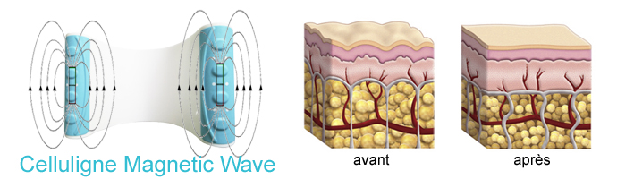 L’utilisation de Celluligne Magnetic Wave permet non seulement de réduire visiblement le tour de cuisses ou de hanches mais aussi d’agir en prévention contre l’apparition de la cellulite, de soulager les jambes lourdes en favorisant le retour veineux ou encore de lisser et nettoyer la peau en éliminant les cellules mortes.