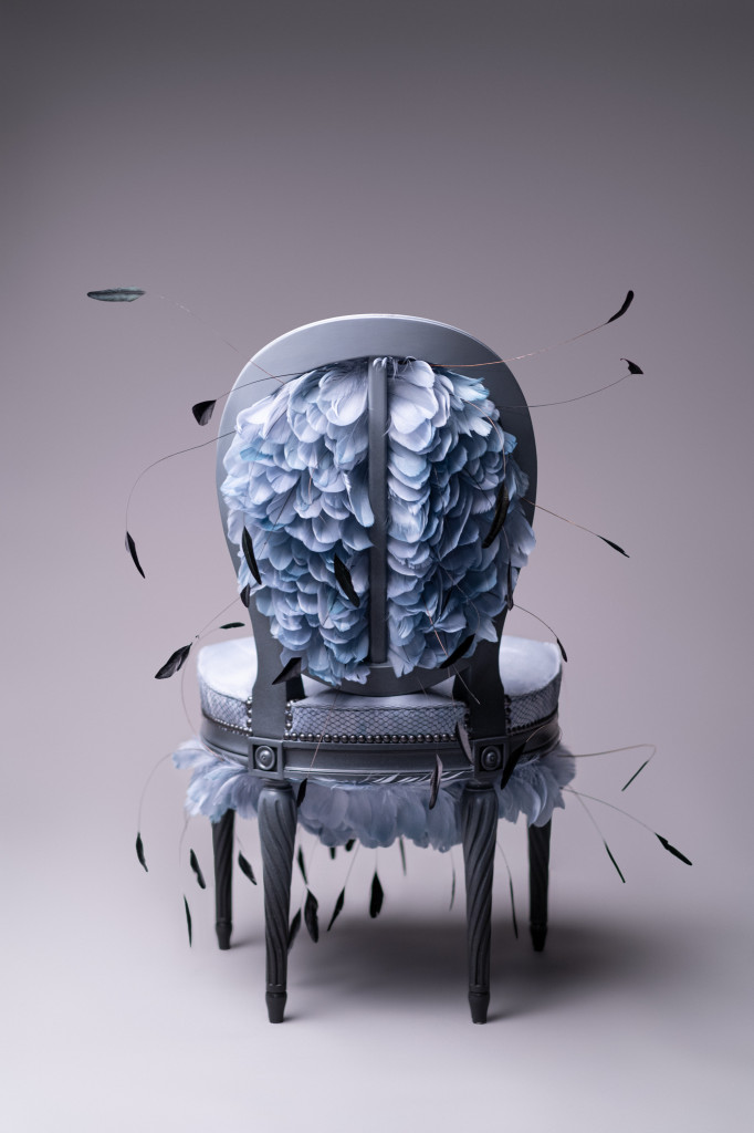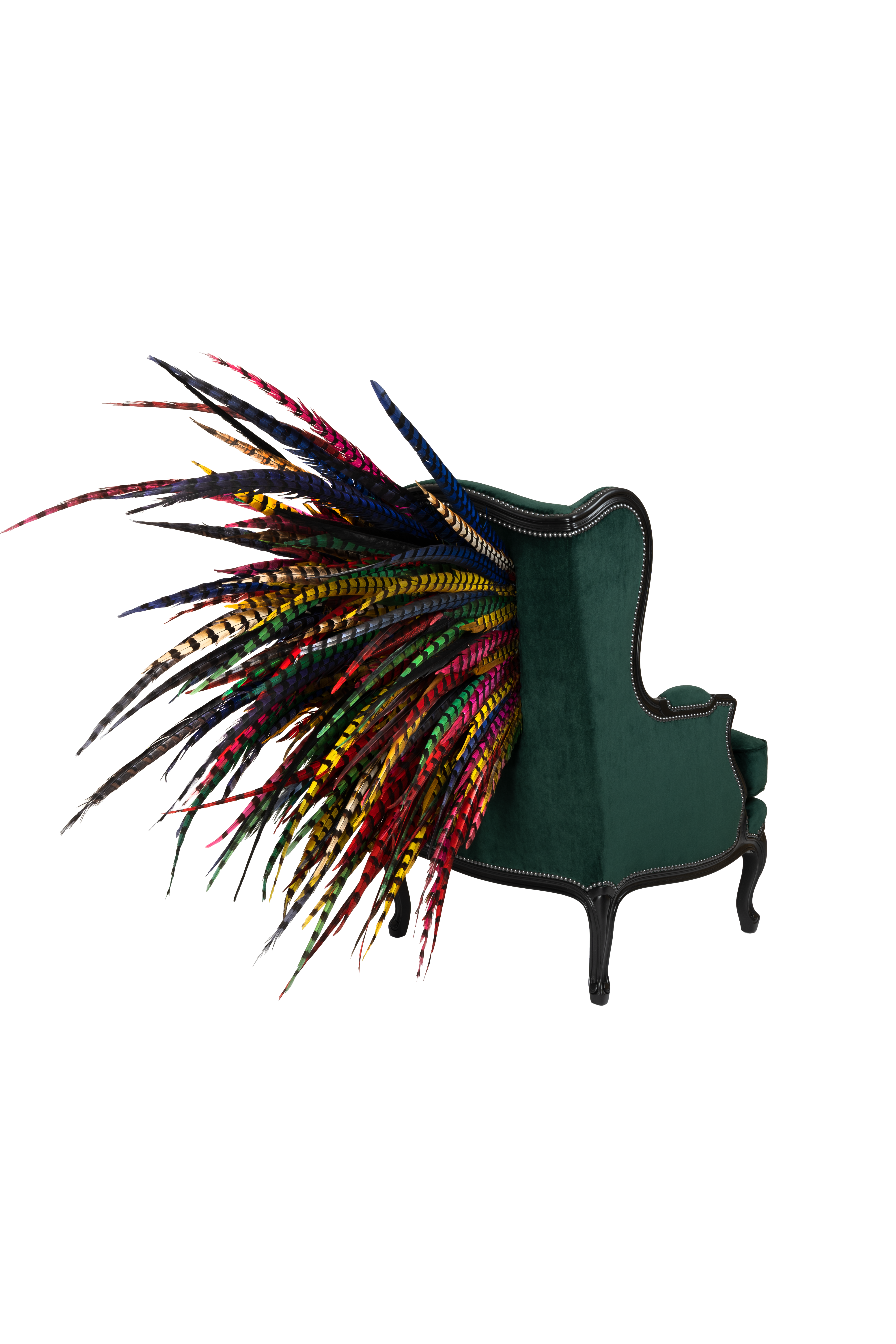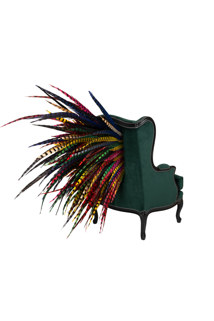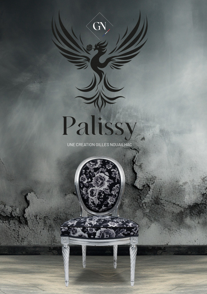 - Partenariat avec des artistes de renom : Gilles Nouailhac collabore avec des artistes et des designers célèbres pour enrichir ses collections. Un exemple marquant de cette collaboration est la chaise ‘Palissy Phenix’, créée avec l’artiste Hervé Matejewski. Cette pièce exceptionnelle symbolise la renaissance de la marque et illustre la capacité de Gilles Nouailhac à fusionner l’art et le mobilier. La chaise est un hommage au phénix qui renaît de ses cendres, avec un travail de plumes exécuté de manière majestueuse, représentant à la fois le renouveau et l’excellence artistique.
