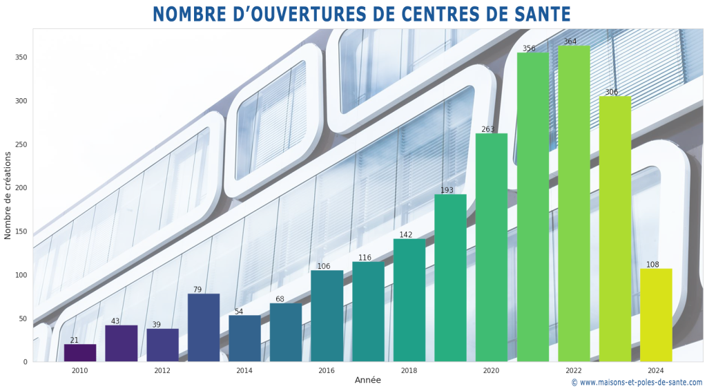 Le marché des Centres de Santé a été hyper dynamique jusqu’en 2023 selon une étude du XERFI (https://www.xerfi.com/presentationetude/les-centres-de-sante_SME95) qui évaluait le nombre de centres de santé en France à 3 100 en 2022 (+373 pour la seule année 2022) et évoquait un éclatement d’une bulle suite au durcissement réglementaire en réaction à plusieurs affaires de groupes s’étant développés rapidement via des pratiques abusives (cf loi Khattabi qui régule désormais l’installation des centres de santé dans des zones en sous dotation). Début Juin 2024, selon notre étude, on dénombrait 3 354 centres de santé.