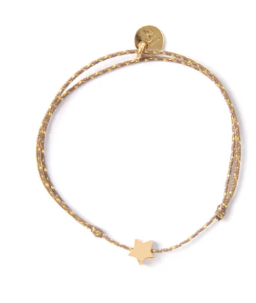 Les bracelets Médaille sont fabriqués à la main à Paris par Julie. Ajustables, les bracelets sont composés d’un lien en cordon et d’une médaille dorée à l’or fin 24 carats, résistant à l’eau.