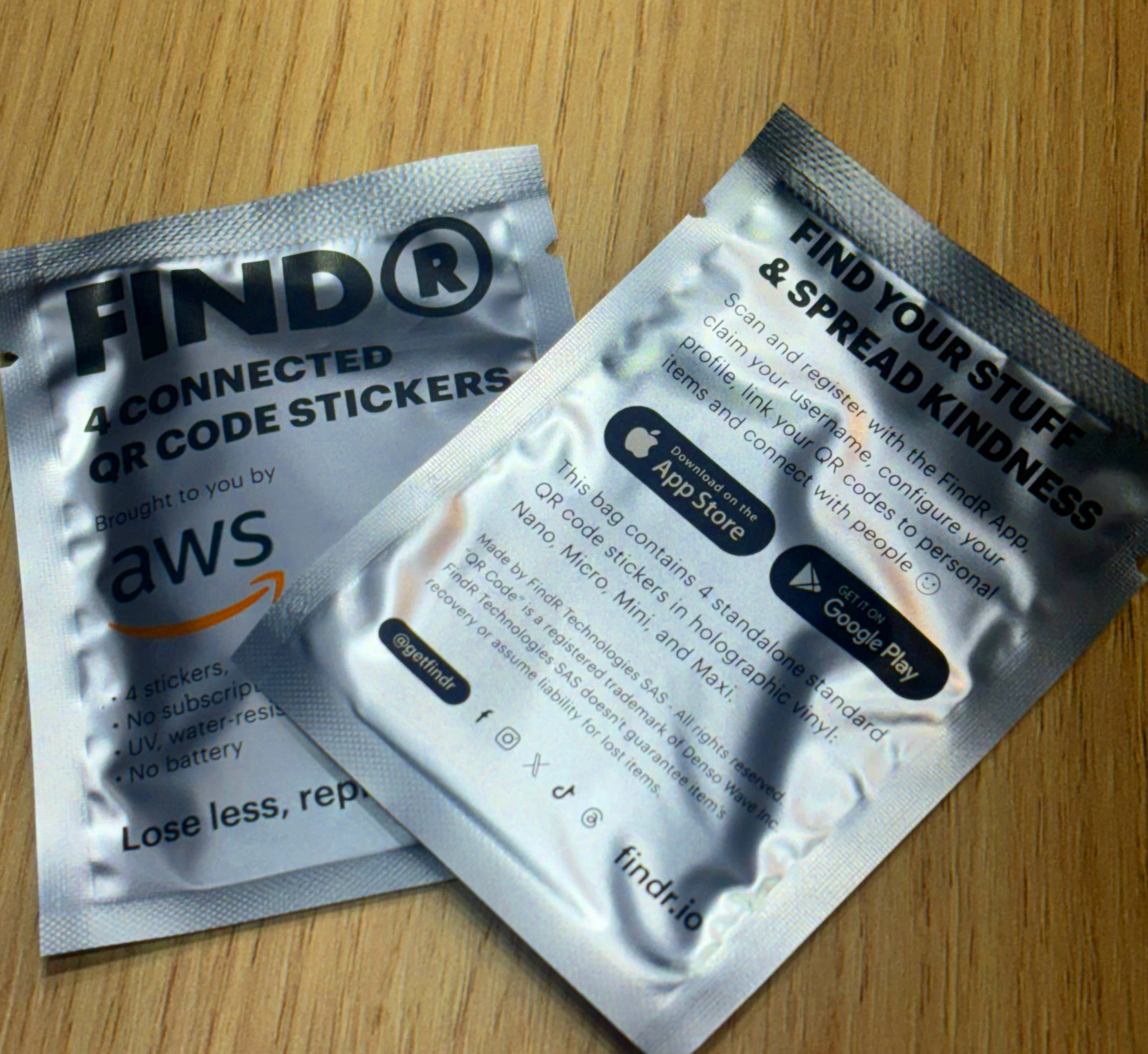 Hébergé par Amazon Web Services et présenté au stand AWS lors du salon Viva Tech à Paris, FindR a créé une série spéciale en édition limitée FindR x AWS de stickers QR code connectés. Ces stickers, ornés de la marque et des couleurs d’AWS, incluent quatre stickers FindR (Nano, Micro, Mini et Maxi) sur du vinyle holographique de haute qualité, qui sont dévoilés au public avec la nouvelle application FindR pour iOS/Android.