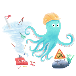 Au fil des 44 pages du magazine, les enfants sont accompagnés par TaKo, un poulpe joyeux et farceur, qui découvre et expérimente avec eux.
