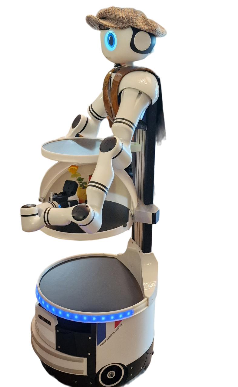 - PUISSANT : ONYRO est un robot mobile intégrant de l’IA, équipé de plateaux couverts et d’un bras. Il comprend les demandes et transporte des plats, des boissons et des objets. Grâce à plusieurs systèmes de sécurité brevetés, ONYRO est totalement sécurisé contre le basculement. Il navigue aisément dans les environnements bondés et encombrés, prenant l’ascenseur et ouvrant les portes ;