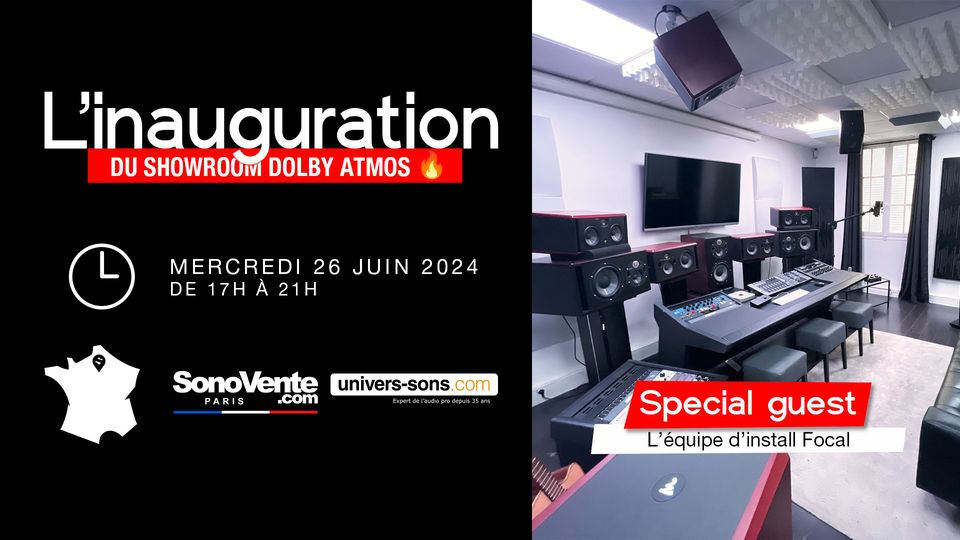 L’inauguration de ce nouveau studio Dolby Atmos Focal est prévu le mercredi 26 juin, de 17h à 21h, dans l’enceinte du magasin Univers-Sons.com, au 159 rue Amelot – 75011 Paris.
