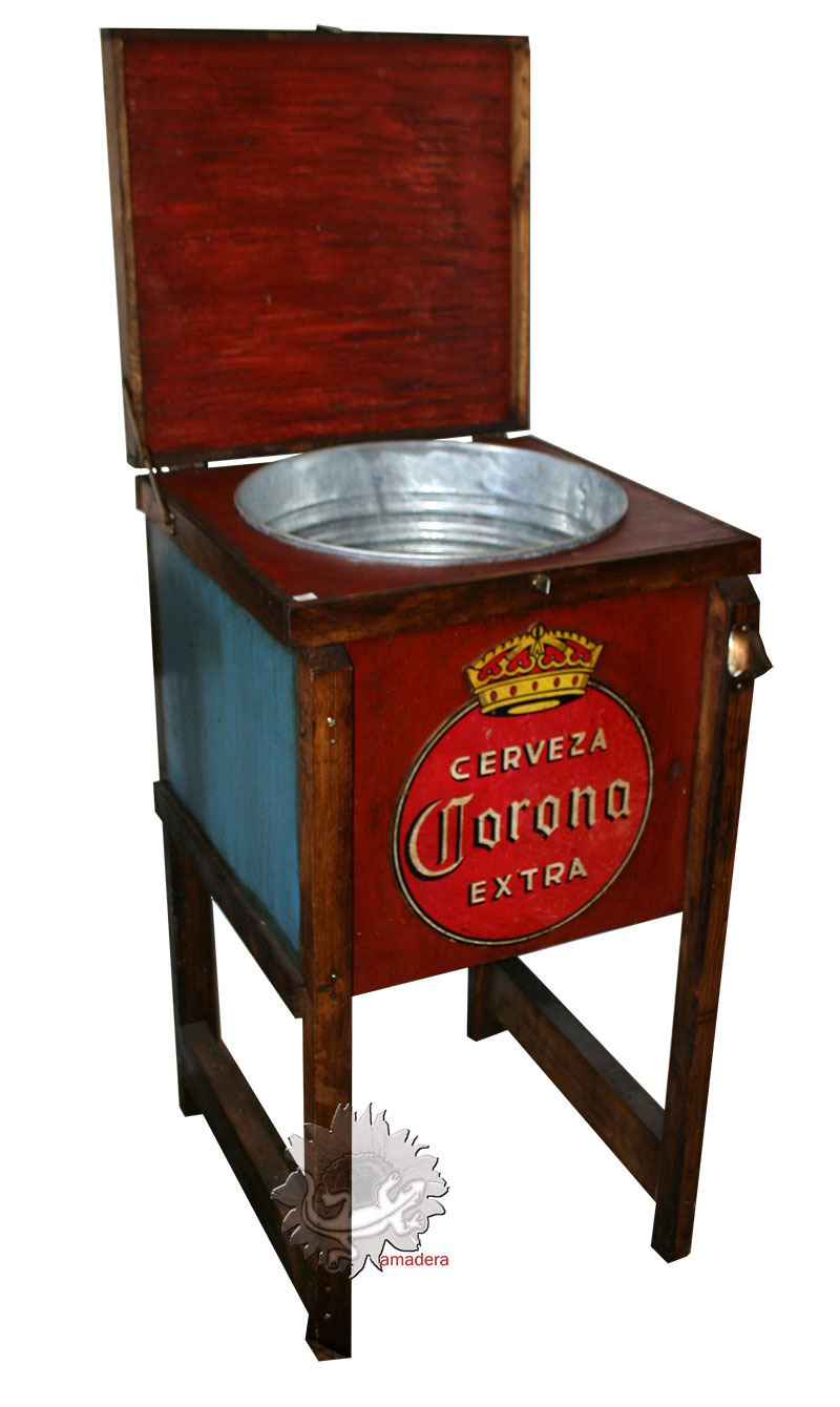 Sous son couvercle, ce petit meuble « glacière » renferme un seau à glace prêt à maintenir les boissons au frais… et un décapsuleur intégré! De plus, un siphon permet de vider le seau lorsque la glace a fondu.