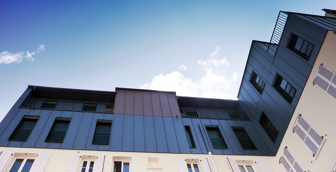 Le projet est vêtu de zinc naturel et d’enduit minéral traditionnel. Les terrasses sont en ipé et bordées de gardes corps en fer forgé.