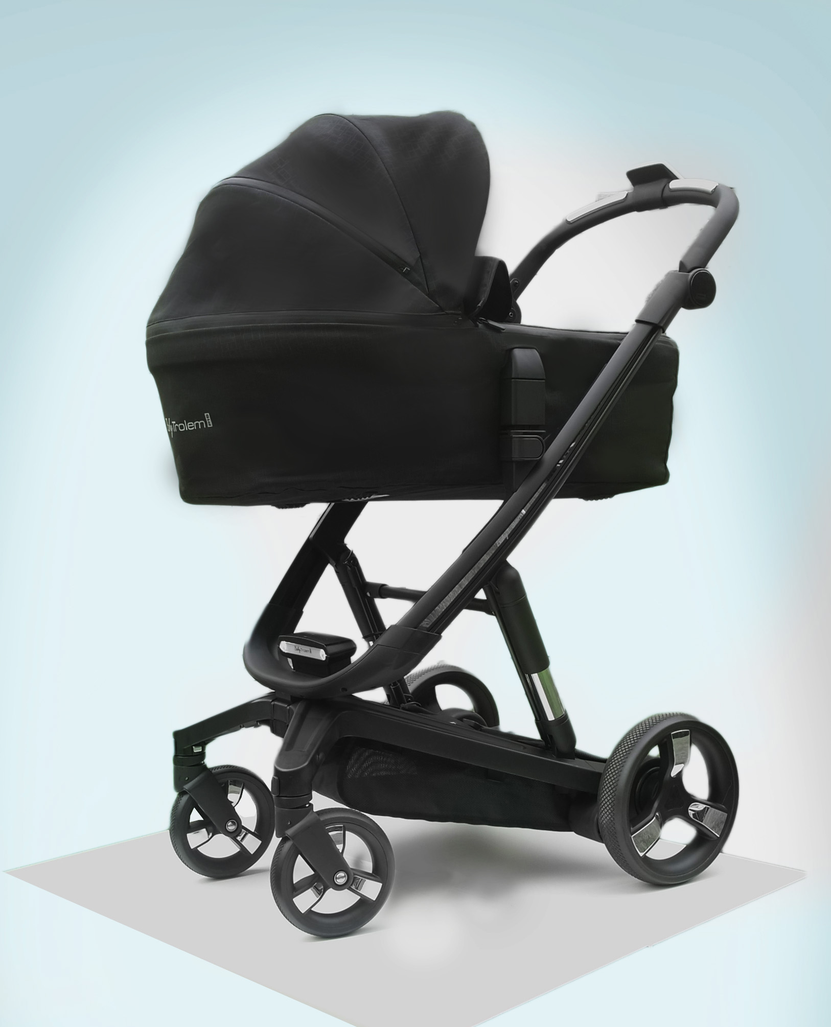 TROLEM a choisi un système de traction électrique à 2 vitesses pour tenir compte des différents reliefs. Aussi le freinage est électrique dès que les mains s’éloignent du manche pour garantir toute la sécurité de la poussette.