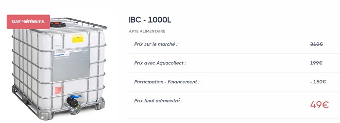 Grâce aux aides territoriales, aux achats groupés et aux livraisons centralisées, Aquacollect propose des récupérateurs d’eau de pluie à des prix défiant toute concurrence (jusqu’à -80 % de réduction).
