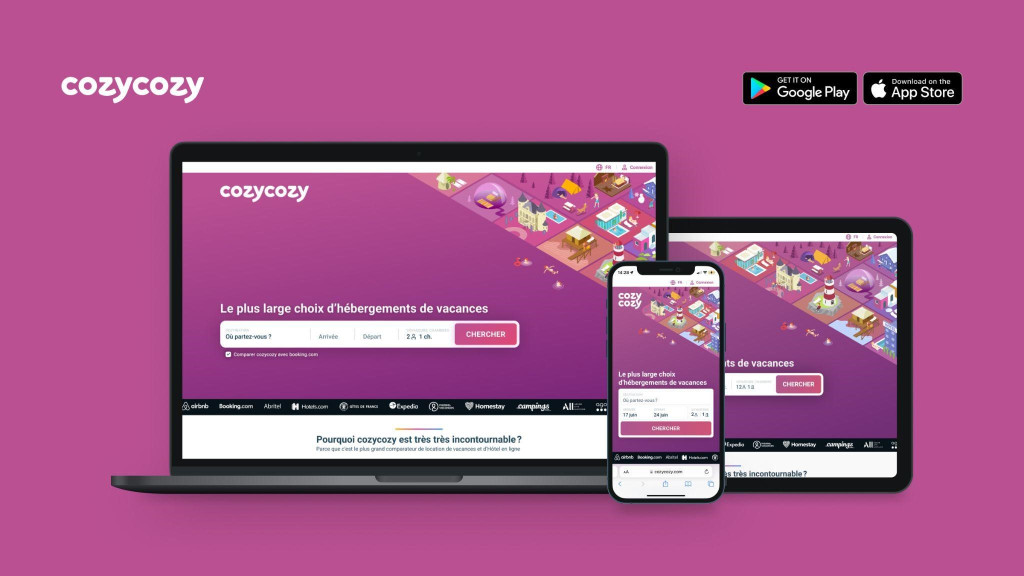 cozycozy est le premier moteur de recherche qui permet d’accéder en temps réel à la totalité des hébergements de vacances disponibles, de manière impartiale et transparente. 20 millions d’hébergements sont accessibles : chambres d’hôtel, locations d’appartement, de maison, de bateau, de lit dans une auberge de jeunesse, hébergements atypiques (tipi, yourte…) ou plus traditionnels (chalet, gîte, riad, camping…). En un seul clic, le voyageur peut désormais trouver son hébergement idéal, toujours au meilleur prix, parmi des centaines de sites spécialisés tels que Booking.com, Airbnb, Hotels.com, Abritel, Gîte de France… et bien d’autres encore. Créée par l’équipe d’experts réunie autour de Pierre Bonelli, déjà à l’origine du comparateur de vol liligo.com, cozycozy est présent aujourd’hui à l’international sur 50 marchés à travers le monde.