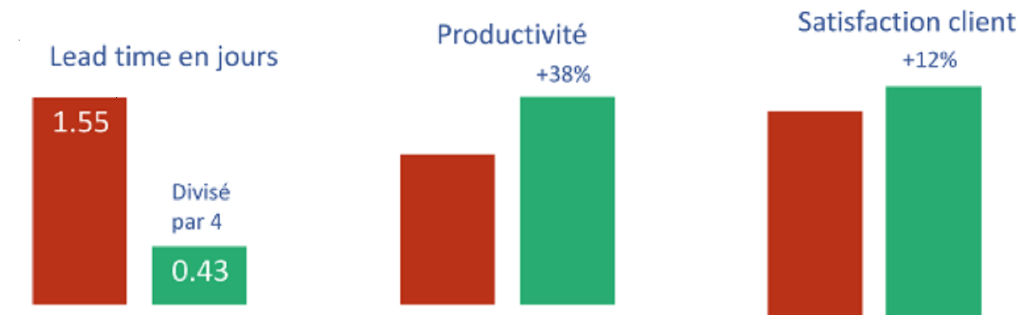Clients finaux satisfaits, qualité de vie au travail améliorée ainsi que la productivité, diminution des stocks et des délais, baisse des problèmes de qualité…