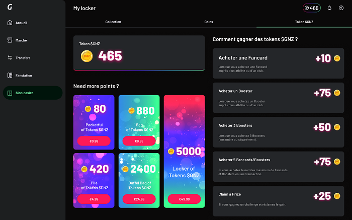 Le token $GNZ sera utilisé comme monnaie pour les achats et transactions sur la place de marché, éliminant ainsi les coûts bancaires trop élevés. Ensuite, comme un moyen direct de récompense de l’engagement des fans pour le sport.