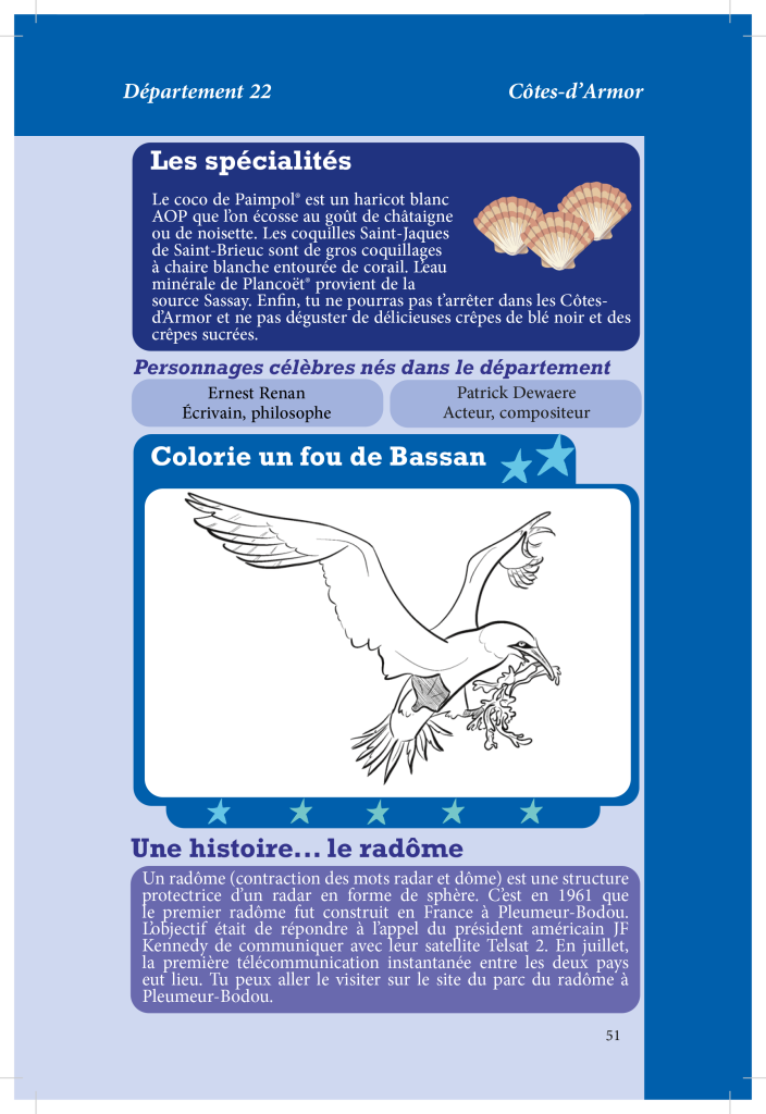Il a été conçu pour présenter chaque département via des anecdotes, des histoires, des personnages, tout en faisant découvrir le terroir. Chaque double page contient aussi un coloriage ou une langue régionale.