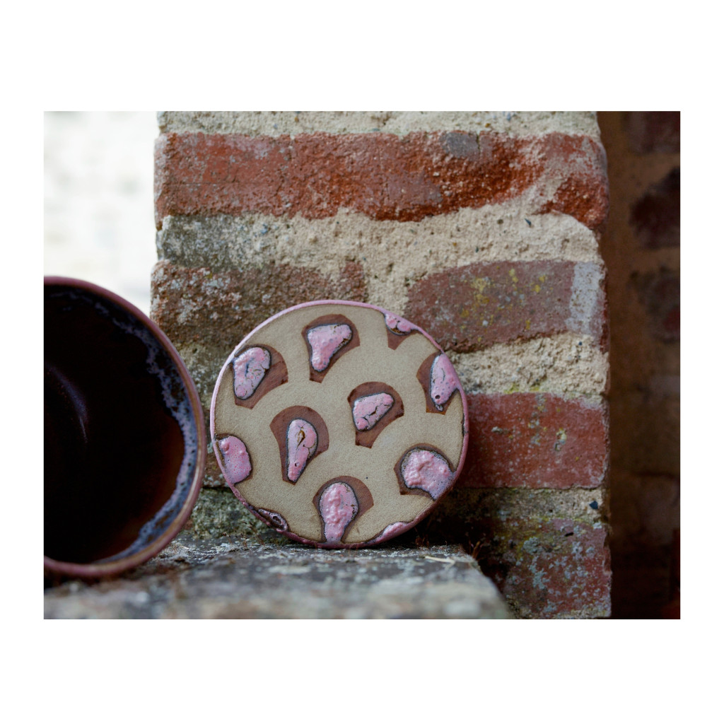 La linogravure, pour donner vie à tous ses projets. Marie maîtrise en effet deux procédés de décor sur la terre : l’empreinte de plaque linogravée sur plaque, et le décor à l’engobe ou à l’émail au pochoir.