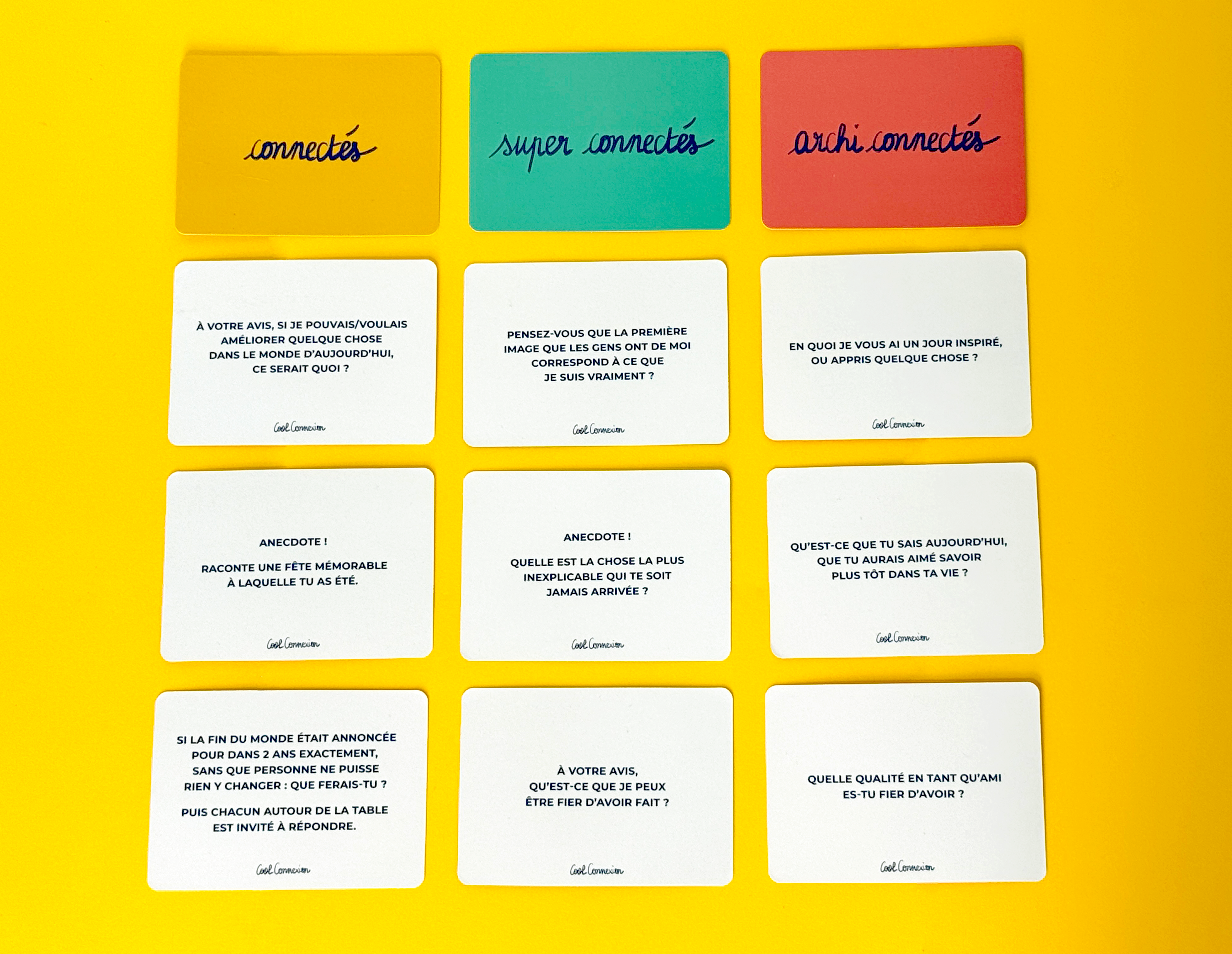 C’est de ce constat qu’est né Cool Connexion, un jeu de cartes conçu pour raviver les discussions, rapprocher les gens et cultiver des moments d’échange véritable.