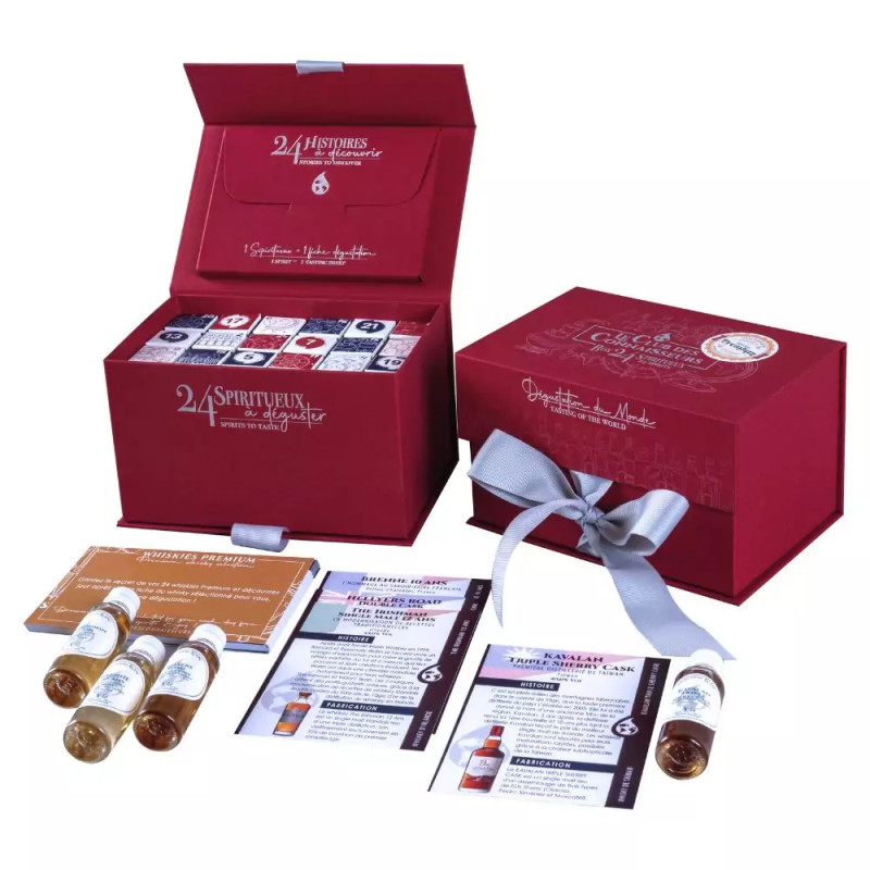 - Calendrier de l’avent Spiritueux : Ce Calendrier de l’Avent Whisky d’Exception Édition 2024 est un coffret de dégustation premium contenant 24 échantillons de whisky de 20 ml chacun. Il propose une expérience unique pour les amateurs de whisky, offrant chaque jour de décembre une découverte différente de whiskies provenant de distilleries prestigieuses du monde entier. Idéal pour terminer le repas sur une note chaleureuse, ou pour une dégustation raffinée en soirée