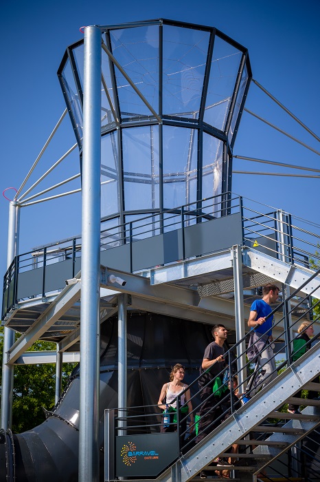 Barravel permet donc de vivre une expérience unique dans un cadre exceptionnel : la plus grande soufflerie extérieure française offre des dimensions et une puissance hors normes (250 km/h – 12 mètres de hauteur – chambre de vol de 3 mètres de diamètre, 6,60 m de hauteur).