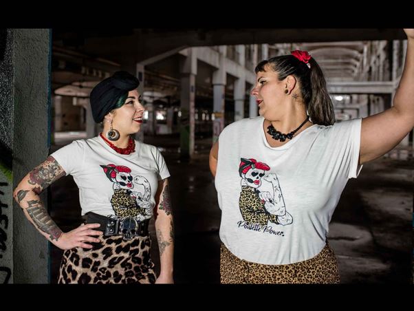 Le logo des Poulettes Sisters donne le ton : inspiré du « HELL YEAH », le signe des cornes utilisé dans le milieu du métal, ce symbole tout en féminité ose les ongles rouges et le glamour. Car ici, les femmes existent, elles ne sont plus des ornements dans le décor ni des potiches sexy. Elles osent revendiquer haut et fort le « Power to metal Pin-up Woman ! »