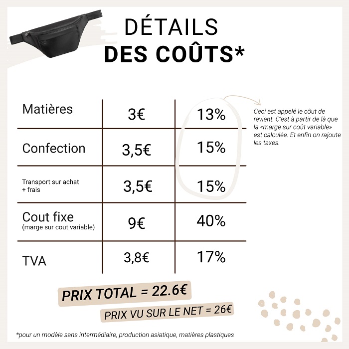 Dans ce contexte, Bhallot lance 3 kits DIY de sacs et accessoires à faire soi-même. Et en même temps, elle communique en toute transparence sur le détail des coûts.