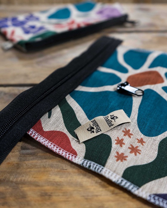 Ce kit contient le tissu de chanvre d’Occitanie, la glissière en plastique (pour couture sur machine à coudre familiale), le curseur pour la glissière, l’étiquette et le guide de montage.