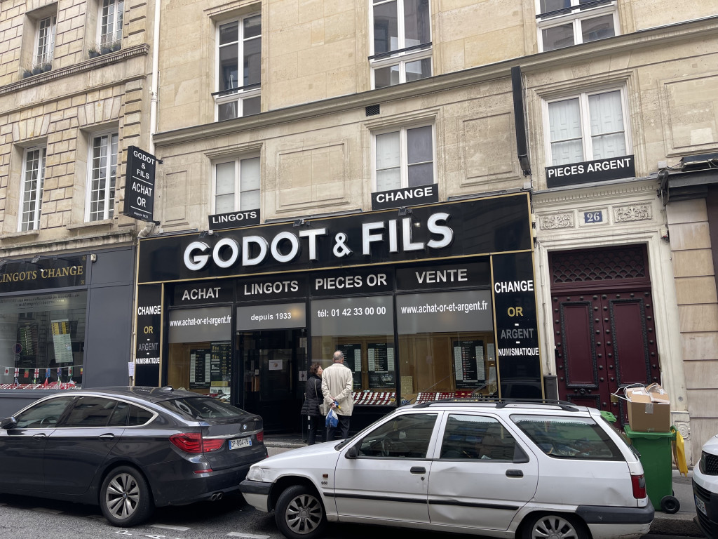 Au fil des décennies, l’agence a bâti une solide réputation dans le domaine de l’achat, de la vente et de l’évaluation de métaux précieux et de pièces rares. Proche de la Bourse de Paris, Godot & Fils s’est développée à l’intersection d’un quartier dynamique et d’une clientèle variée, alliant professionnels, collectionneurs et particuliers.
