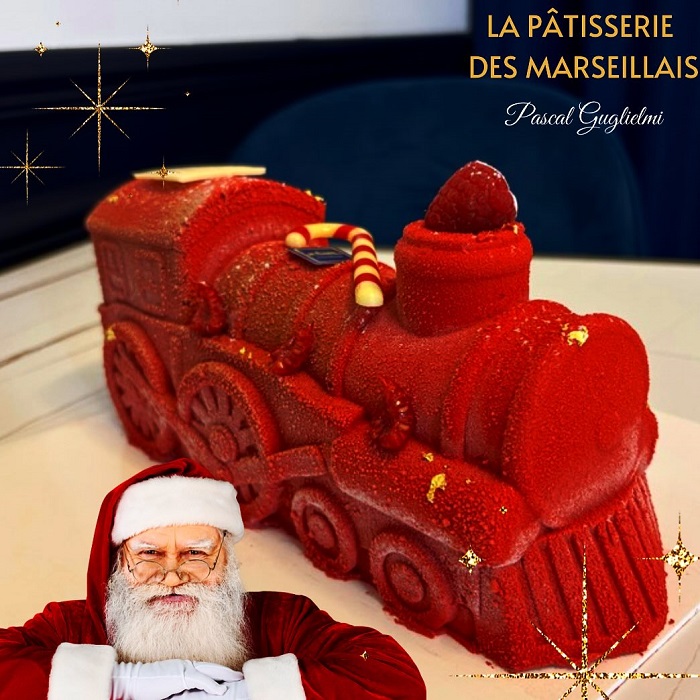 Aujourd’hui, alors que les fêtes approchent, Pascal a souhaité rendre un double hommage à ses parents en créant une bûche de Noël inédite en forme de train.