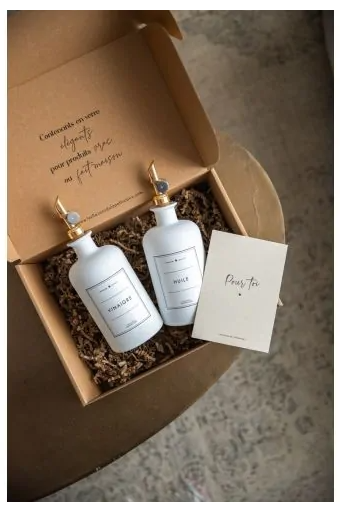 La marque présente une sélection de produits, pensés pour sublimer chaque espace de la maison : la box « Huile et Vinaigre Blanc » pour les amateurs de cuisine élégante et ordonnée, la box « 4 flacons ambre – Essentiels cuisine » pour organiser les produits d’entretien du quotidien, et le flacon « Allumettes » pour illuminer sa journée.