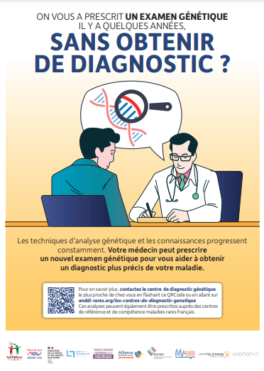 La filière AnDDI-Rares, en partenariat avec les autres filières de santé maladies rares et des acteurs majeurs tels que le Ministère de la Santé, l’AFM-Téléthon et le Plan France Médecine Génomique 2025, l’Agence de la Biomédecine, l’Alliance Maladies Rares, la Banque Nationale de Données Maladies Rares, Maladies Rares Info Service et Orphanet lancent une campagne nationale pour encourager la reprise des investigations génétiques. Cette initiative vise à informer les patients et leurs proches que même un diagnostic non conclu il y a quelques années peut aujourd’hui être réexaminé à la lumière des avancées scientifiques.