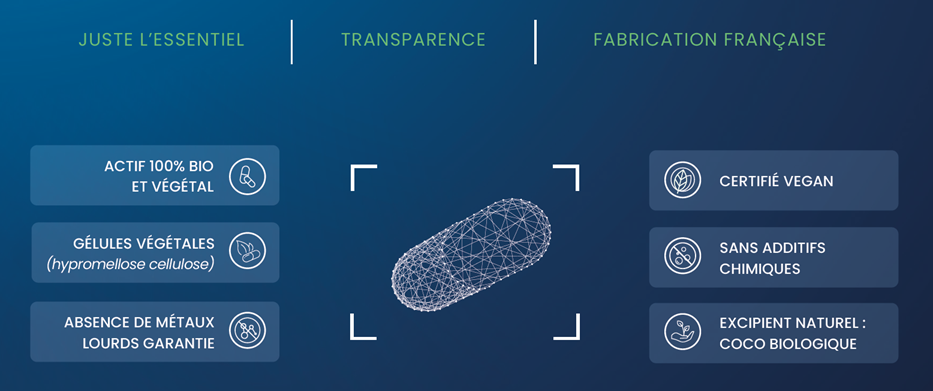 - Extraction hydro-alcoolique, sans solvant néfaste – Formulation sans additifs ni excipients controversés.
