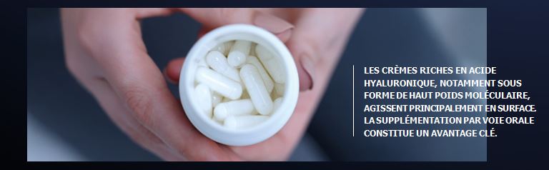 Si l’acide hyaluronique est déjà largement utilisé dans les soins topiques, comme les crèmes hydratantes et/ou anti-âge, sa pénétration n’est pas toujours optimale. Une supplémentation par voie orale permet de pallier cette contrainte en apportant cette molécule directement à l’organisme.
