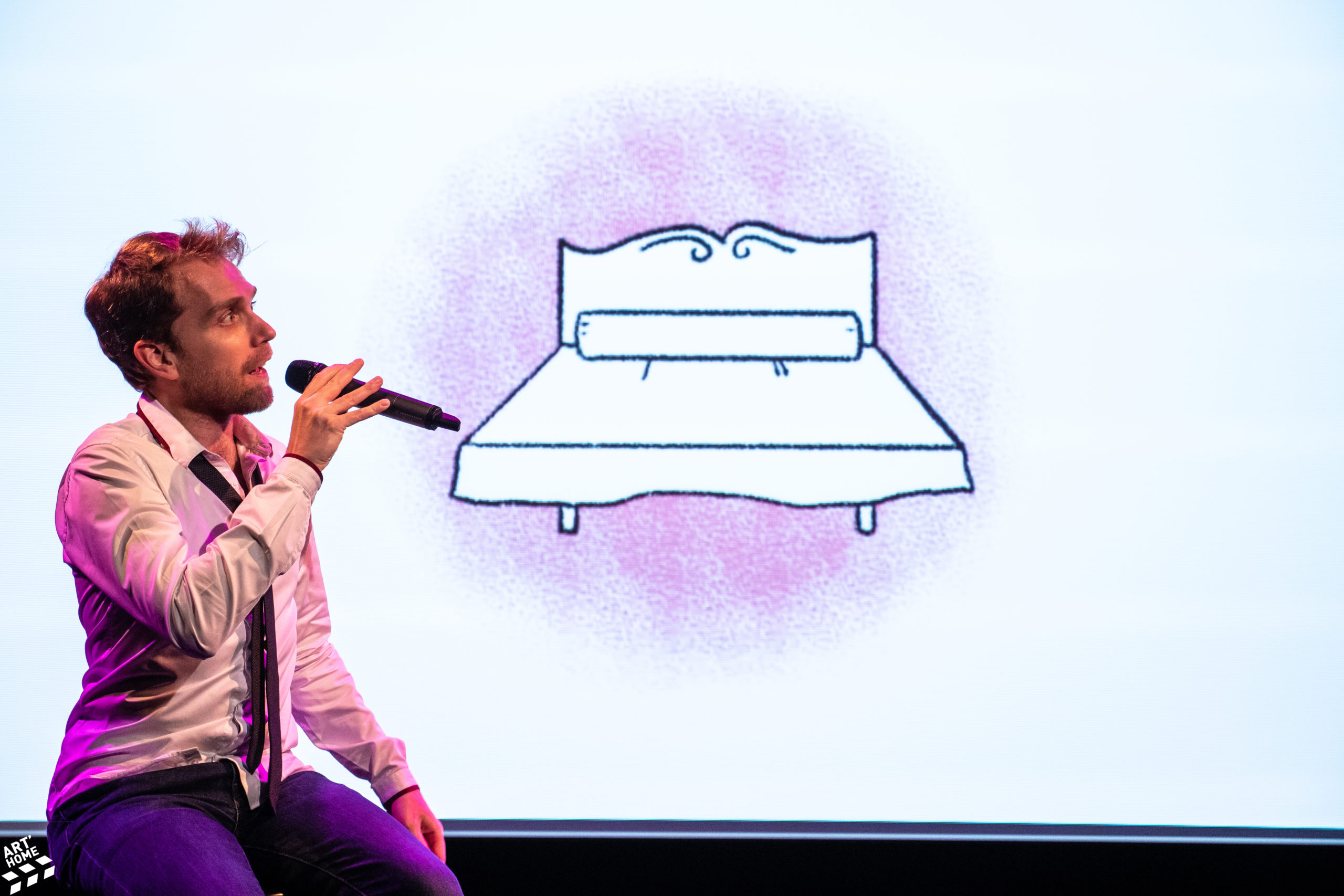 Sa capacité à fédérer est également renforcée par une innovation scénique unique : le slam dessiné.