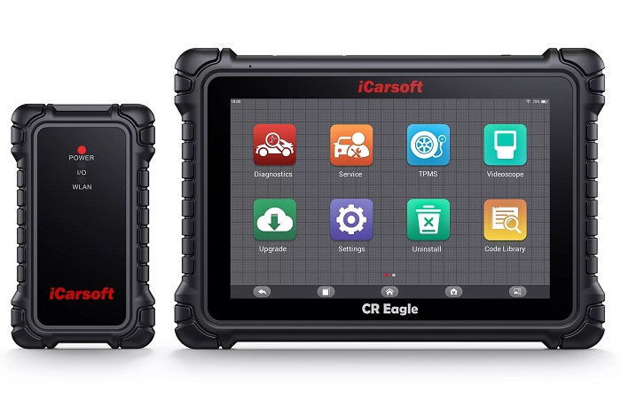 Lancée en janvier 2025 et compatible avec plus de 60 marques, iCarsoft CR Eagle est équipée d’un écran tactile de 10 pouces. Elle offre un diagnostic complet, réinitialise les entretiens, programme les valves TPMS et inclut une caméra endoscopique.