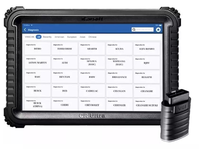iCarsoft CR Ultra est une valise destinée aux ateliers, aux garages et aux concessions afin de réaliser un diagnostic sur tous les systèmes, entretiens et vidanges. Elle offre aussi de puissantes fonctions de programmation et codage.