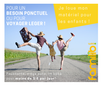 Créé en 2011 par Franck Bréant, jeune père alors confronté à la difficulté de voyager avec ses enfants, FAMILIB est aujourd’hui le premier réseau national de location de matériel pour enfants de 0 à 10 ans. Le modèle est simple : on loue des produits de qualités et adaptés, sans frais cachés, sans abonnement, et sans logistique complexe.