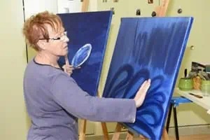 En tant qu’artiste peintre, elle aime créer, inventer, expérimenter, s’exprimer de multiples façons, ce qui se traduit par différentes périodes dans ses œuvres. Avec une signature unique : chaque toile est née d’un dialogue d’associations libres, comme sur le divan d’un psychanalyste.