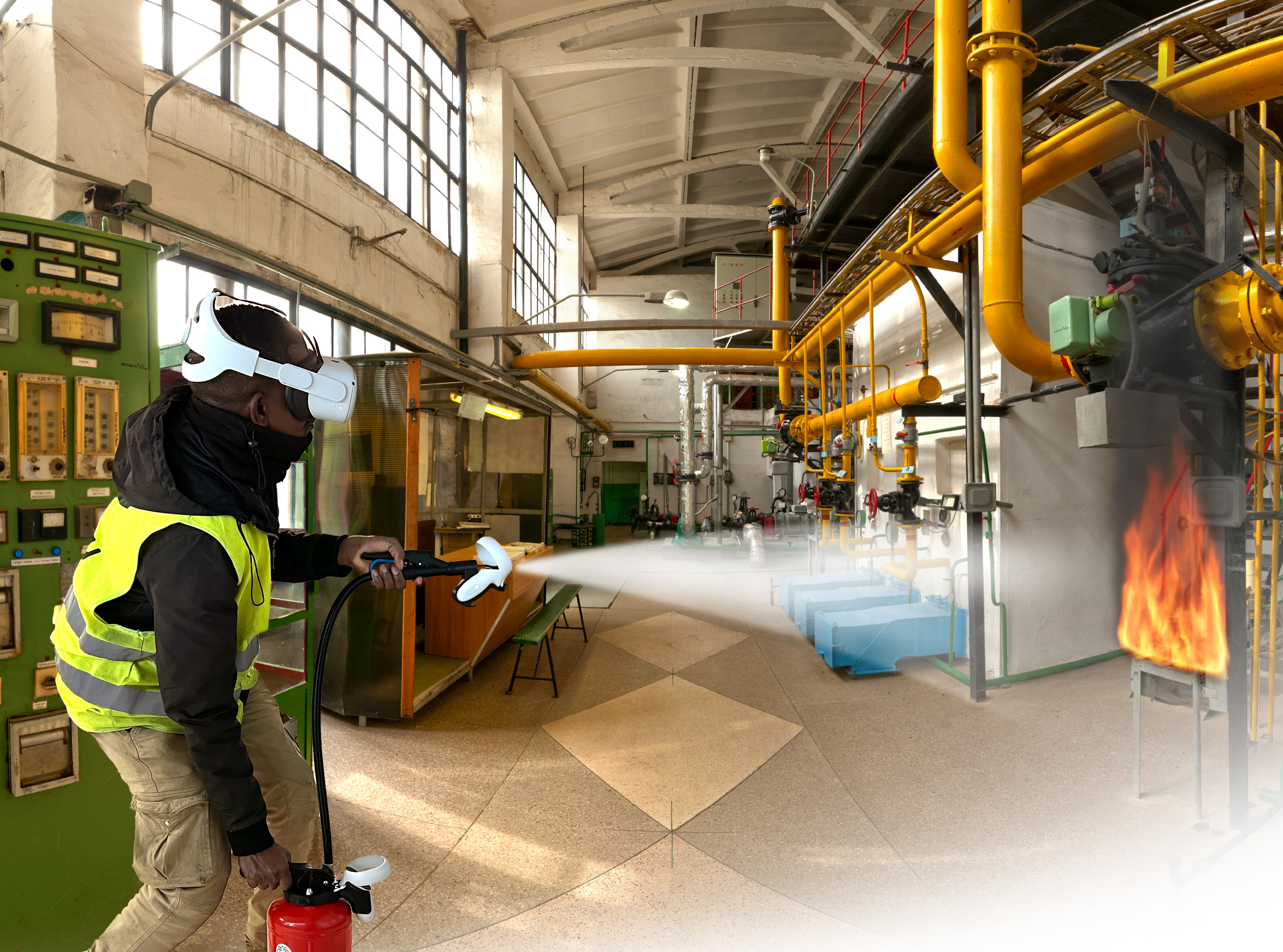 Développé pour les environnements professionnels les plus divers, industries, établissements publics, entrepôts, bureaux, FIRE AR No Limit utilise un casque de réalité virtuelle et augmentée Meta Quest 3 pour projeter l’incendie dans le réel. Grâce à la réalité augmentée, l’utilisateur perçoit son environnement physique, enrichi de flammes, fumées, alarmes, extincteurs et signalisations virtuelles. Le feu devient visible, audible, maîtrisable, mais sans flamme réelle.