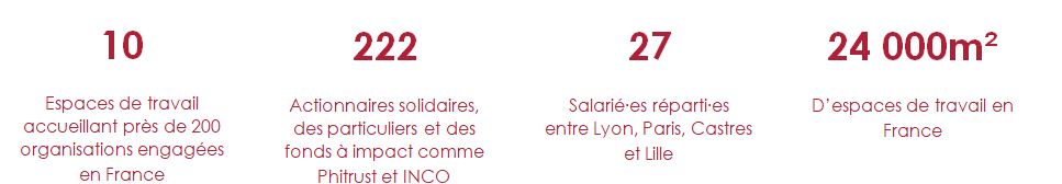 Elle conçoit, finance, rénove, exploite et anime des espaces de travail écoresponsables, spécifiquement dédiés aux acteurs et actrices de la transition sociale, écologique et démocratique : structures de l’économie sociale et solidaire, organismes de formation, établissements d’enseignement supérieur et professionnel, ou encore professionnel∙les de santé.
