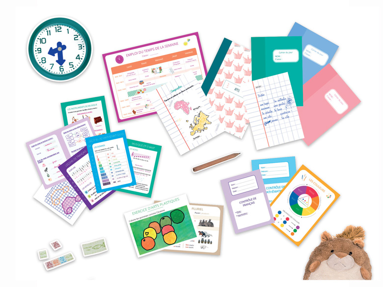 “Je me suis revue petite à m’amuser de la même façon ! Cela m’a plu de lui créer, au fil du temps, des accessoires sur mon ordinateur : des petites dictées à corriger puis des leçons de maths, le menu de la cantine etc.”, explique-t-elle.