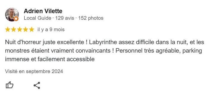 Un Labyrinthe Géant, la nuit, envahi de créatures… En sortirez-vous vivant ? Avec la Nuit de l’Horreur, les frayeurs sont garanties ! Réussirez-vous à sortir du labyrinthe en moins d’1 heure ?