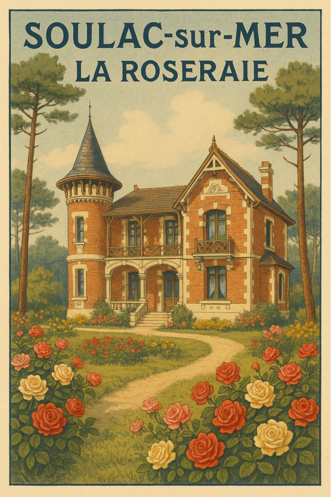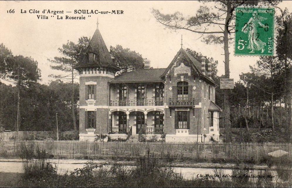 Au fil des décennies, la demeure s’agrandit et se pare des atours caractéristiques des résidences balnéaires de la Belle Époque : briques rouges, pierres de taille, boiseries ouvragées, loggias, tourelle discrète. Elle adopte aussi un nom, “La Roseraie”, dans la tradition alors répandue de baptiser les villas d’un nom floral. À Soulac, on croise alors la Villa des Glycines, des Marguerites ou des Roses : autant de refuges estivaux évoquant le raffinement bourgeois et l’art de vivre en bord de mer.
