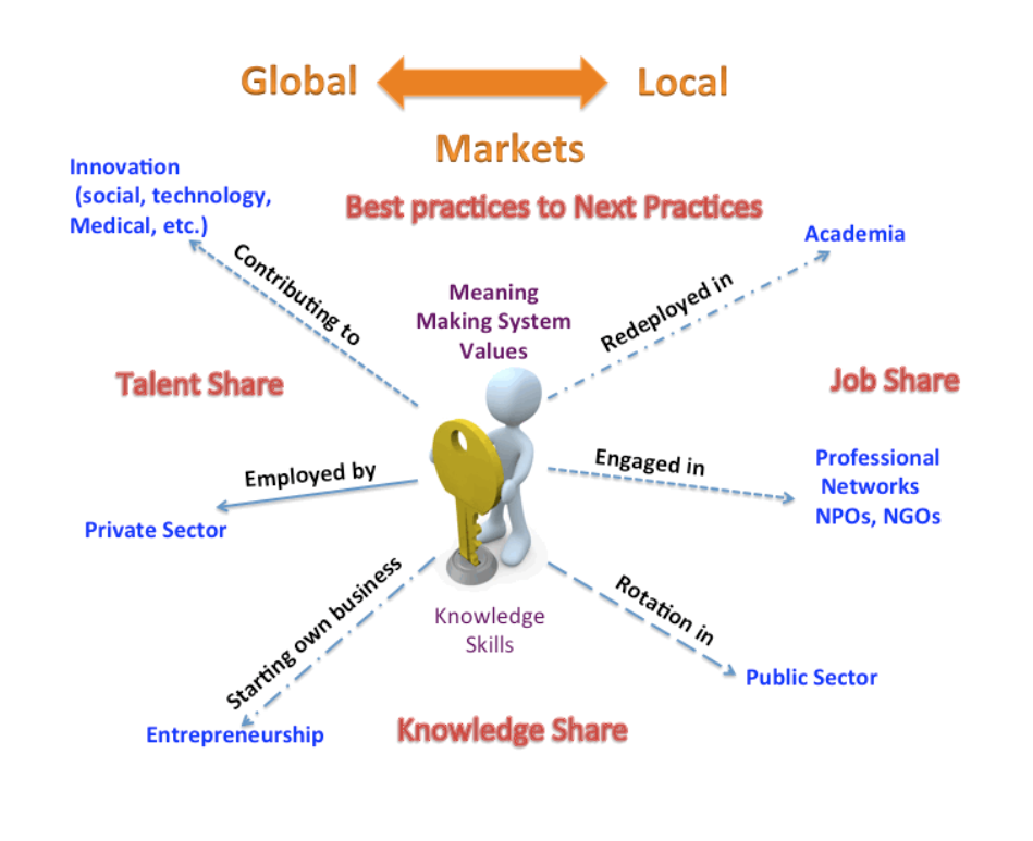 “La gestion des ressources humaines articulée autour d’un lien de subordination en échange d’une rémunération et de la sécurité de l’emploi assurés par un seul et même employeur, est appelée à devenir obsolète, tant au niveau social qu’économique. La notion même de C.D.I. est remise en question par certains acteurs aussi bien du côté du secteur public, que des entreprises et par les salariés eux-mêmes, chacun ayant besoin de plus grande flexibilité, d’assurances, de compétences multiples, d’ancrages différents. Nous sommes convaincues que ce modèle de management circulaire peut créer plus d’engagement de la part des collaborateurs, plus de sens retrouvé, plus de collaboration, de créativité, plus d’innovation et au final plus de valeur et de compétitivité pour l’entreprise, les entreprises.”