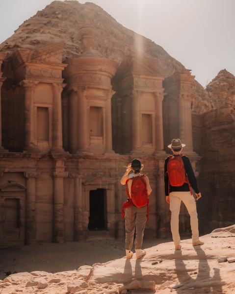 Le cinquième jour de l’aventure marque l’entrée dans l’une des merveilles du monde. Pétra, la légendaire cité taillée dans la roche, fait partie du patrimoine mondial de l’UNESCO et incarne la rencontre parfaite entre histoire et beauté brute. Les participants auront l’opportunité d’explorer ses ruelles, ses tombes sculptées et son Trésor, ce monument emblématique qui se dévoile au bout du Siq, un canyon étroit. Cette journée marquera une récompense majestueuse après l’effort des jours précédents. C’est un véritable voyage dans le temps qui permet de mêler aventure et émerveillement, tout en offrant un répit bien mérité après les journées dans le désert.