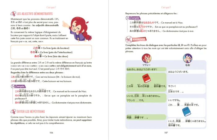 Les illustrations “meccha kawaii”, inspirées du graphisme japonais contemporain, rendent la lecture plus vivante et favorisent l’immersion.