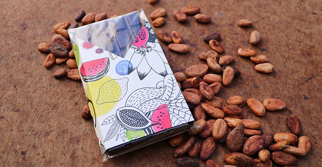 L’équipe de K’FECO a fait le choix d’un chocolat sans matière animale, sans conservateurs, sans additifs, élaboré à partir d’ingrédients nobles : sucre de fleur de coco, huile de coco pressée à froid, fruits et plantes du jardin.